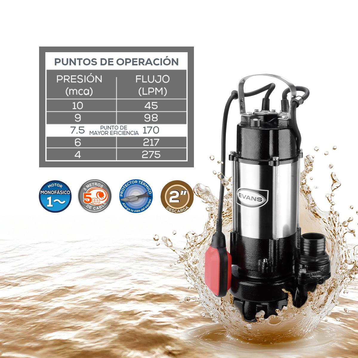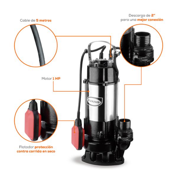 BOMBA DE AGUA SUMERGIBLE DE 1HP 170L/MIN