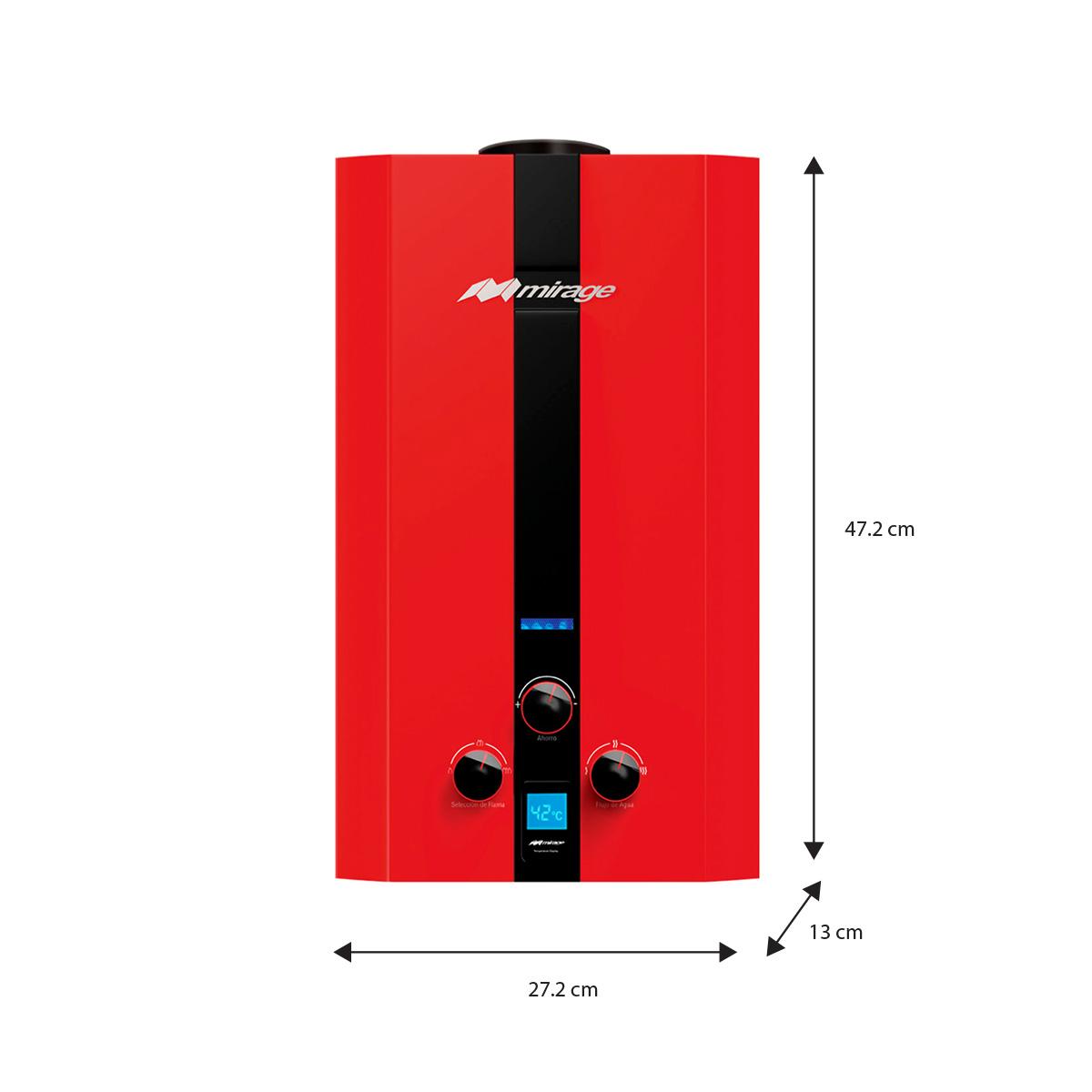Disfruta una temperatura confortable con el calentador de agua flux rojo gas natural de 6 litros de mirage. Nuestra línea de equipos de boilers de paso son ideales para adaptarse a tus necesidades, este modelo puede abastecer hasta fuente de agua con 6 litros por minuto. Es ideal para lugares con baja presión de agua, ya que con solo 1.45 psi de presión se habilita su funcionamiento. Cuenta con un display digital donde podrás obtener visualizar la temperatura en tiempo real. Ahorra hasta un 70% en tu consumo de gas gracias a la tecnología energy saver y su encendido automático. Disfruta la temperatura ideal con tu nuevo calentador flux de mirage.