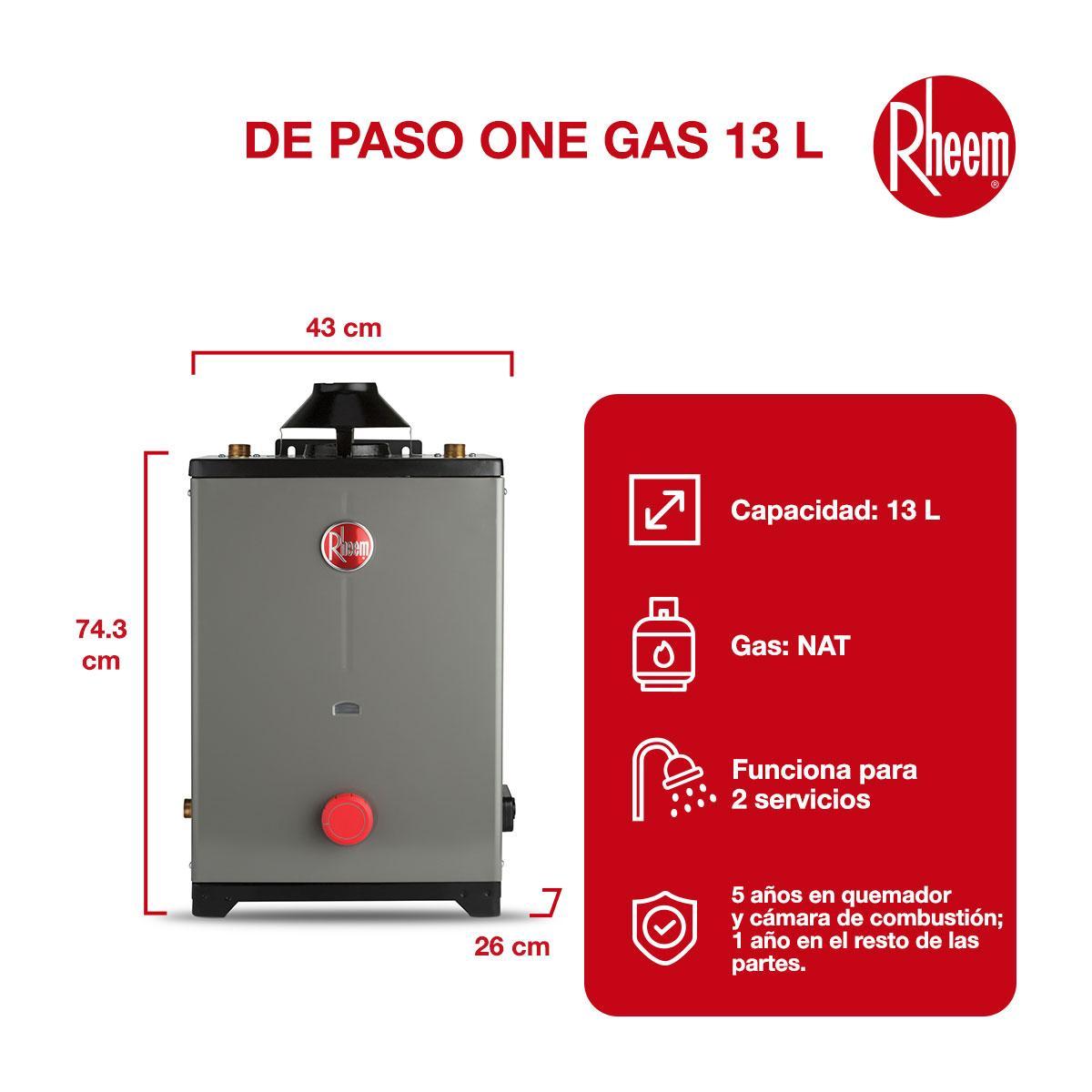 CALENTADOR DE PASO A GAS NAT RHEEM 2 SERVICIOS 13 L