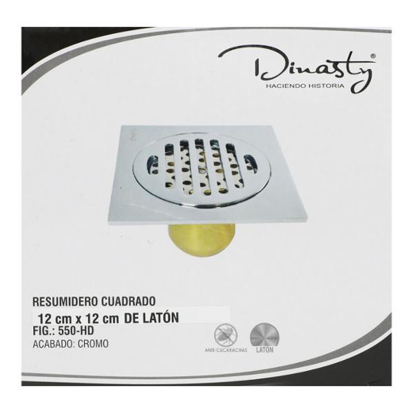 RESUMIDERO CUADRADO DE LATÓN 12 X 12 CM CON REJILLA ATRAPAPELO Y SISTEMA ANTICUCARACHAS