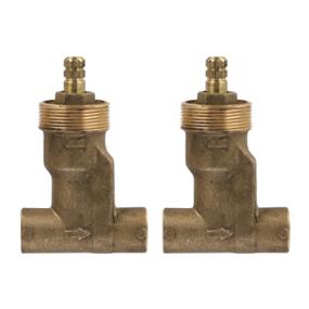 Juego de llaves de empotrar soldables 1/2 pulgada Dica sin manerales, útil en la instalación del sistema hidráulico de la regadera. El cartucho y el vástago ascendente están fabricados en latón dorado que lo vuelven resistente a la corrosión, su diseño permite una apertura sencilla para el flujo de agua caliente o fría. Su cuerpo permite instalarlas de manera fácil y rápida en la pared. El empaque contiene 2 piezas con dimensiones de 8.5 x 5.5 x 3 cm, así como sus respectivas fundas protectoras.