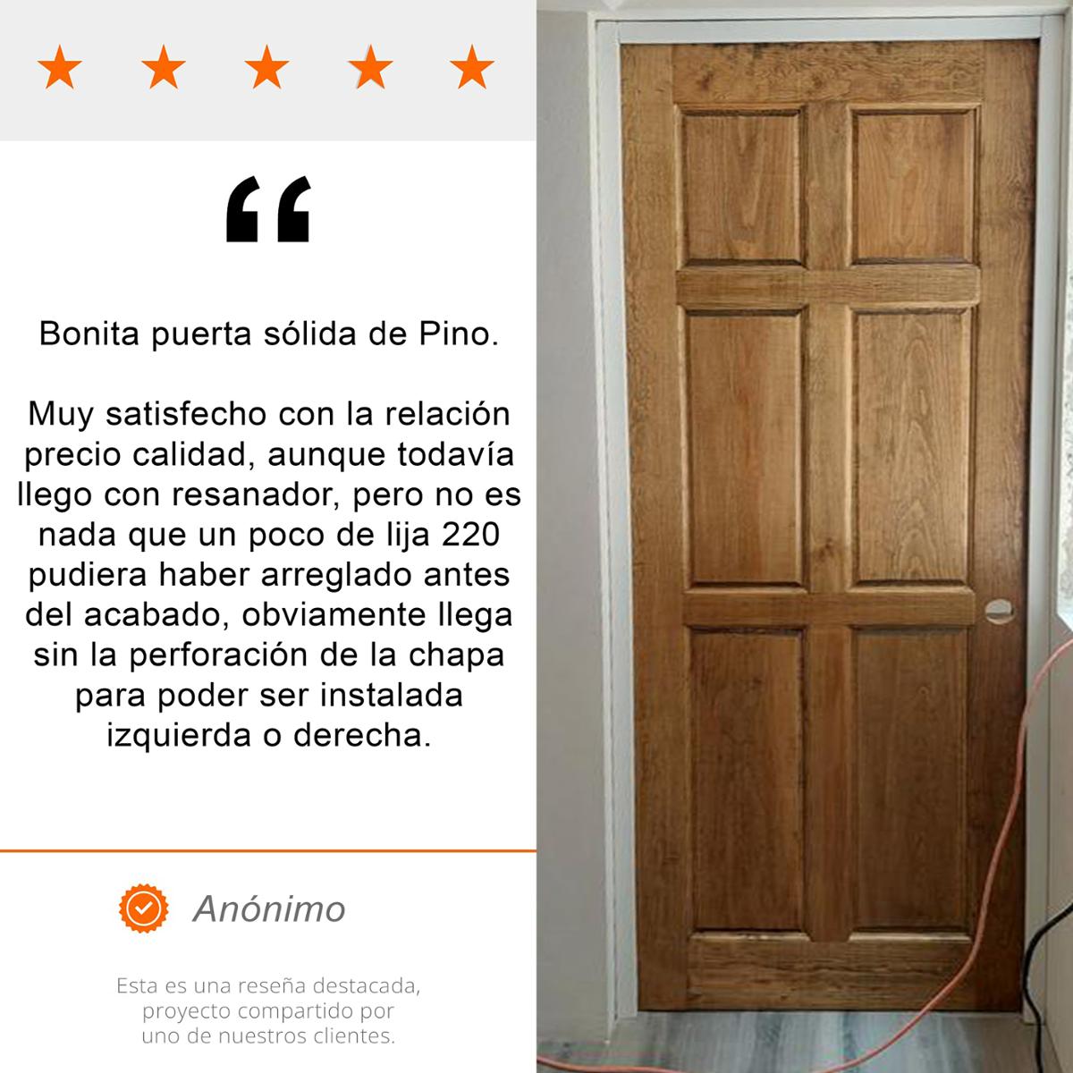 PUERTA SÓLIDA PINO 6 TABLEROS AJUSTE EXPRESS 80 X 213 CM