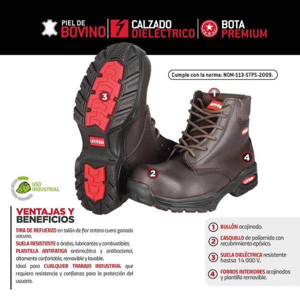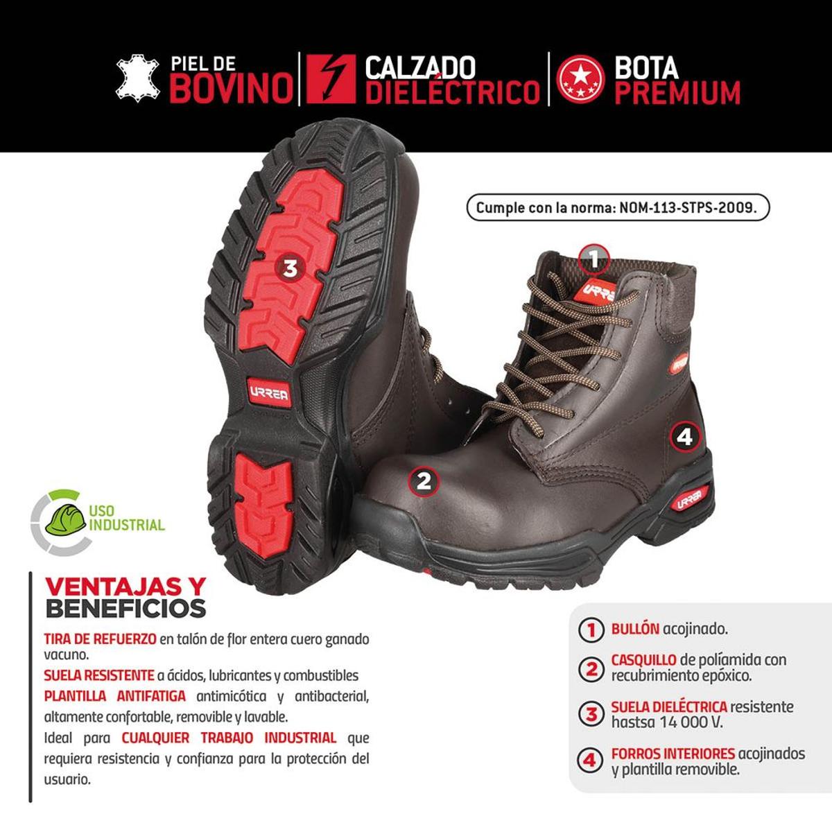 URREA BOTAS SEGURIDAD DIELÉCTRICAS CASQUILLO DE POLIAMIDA 31 CM