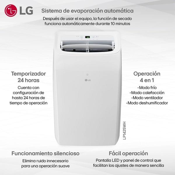AIRE ACONDICIONADO PORTÁTIL LG, ENFRIAMIENTO 14,000 BTU/H, 115V, COLOR BLANCO