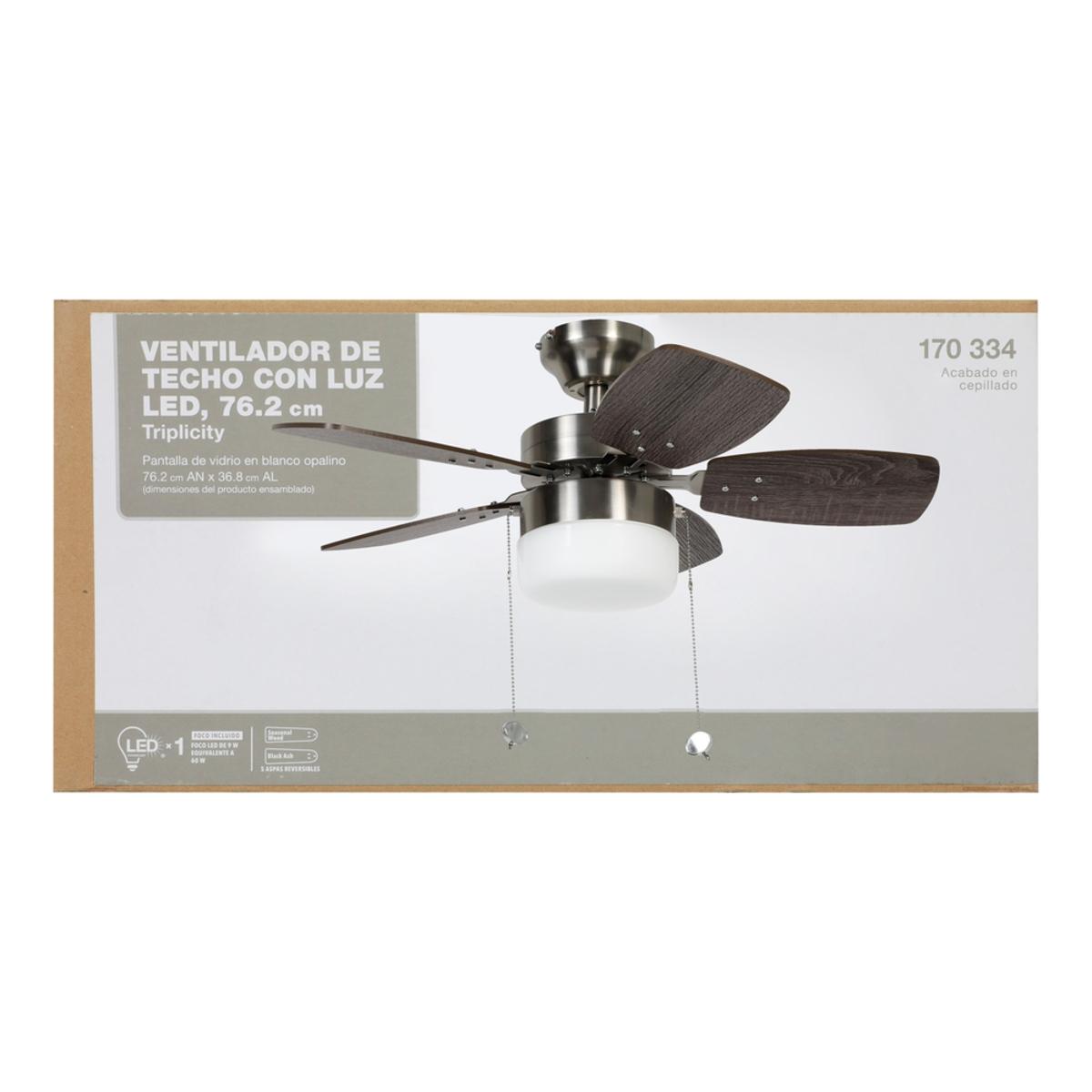 Sku#170334 Modelo:Db30vmb-lpVENTILADOR DE TECHO TRIPLICITY II 30" PARA INTERIOR NÍQUEL
