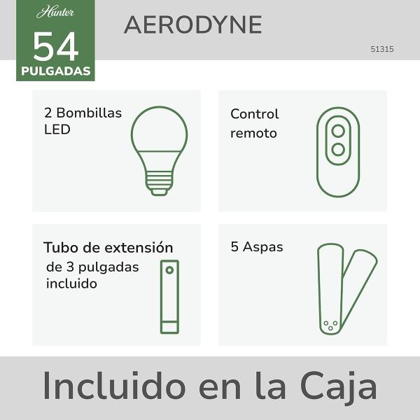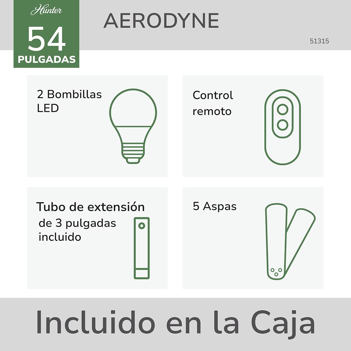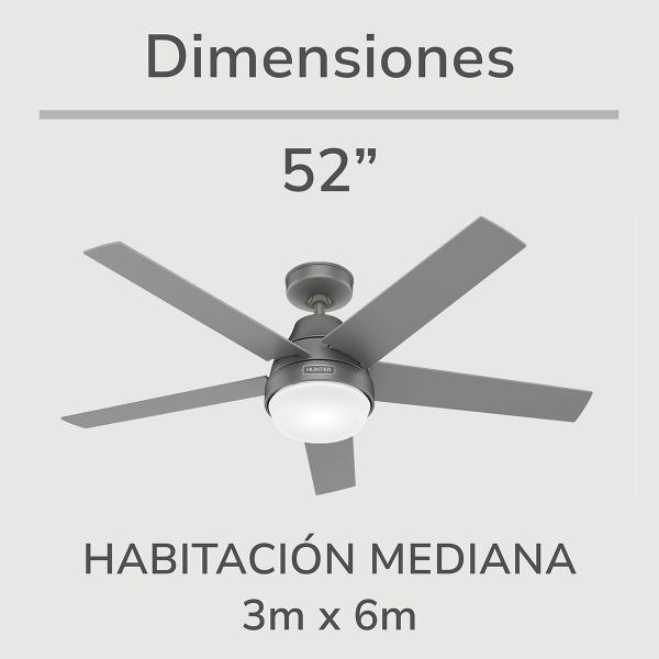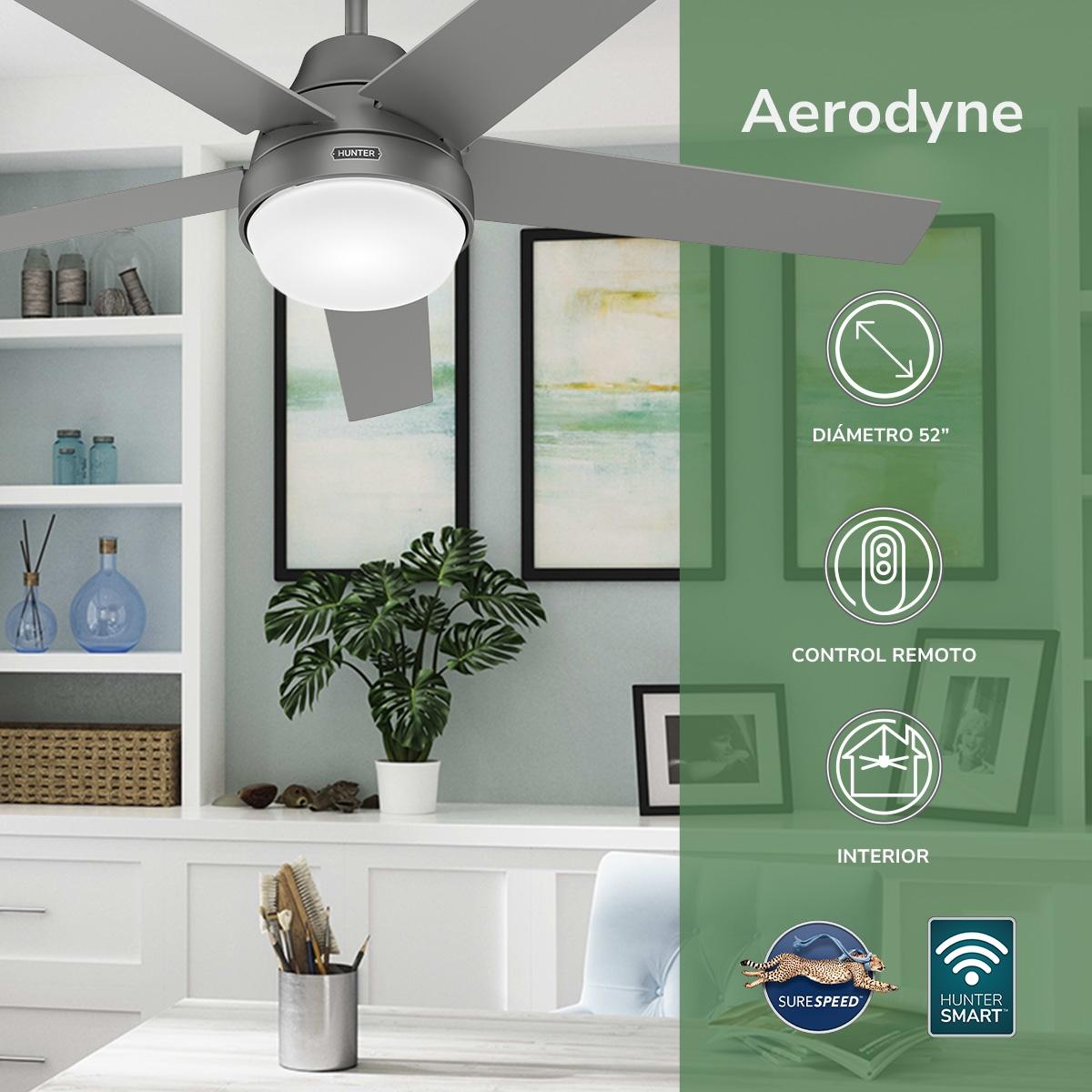 VENTILADOR DE TECHO AERODYNE 52" MODERNO PARA INTERIOR CON LUZ PLATA