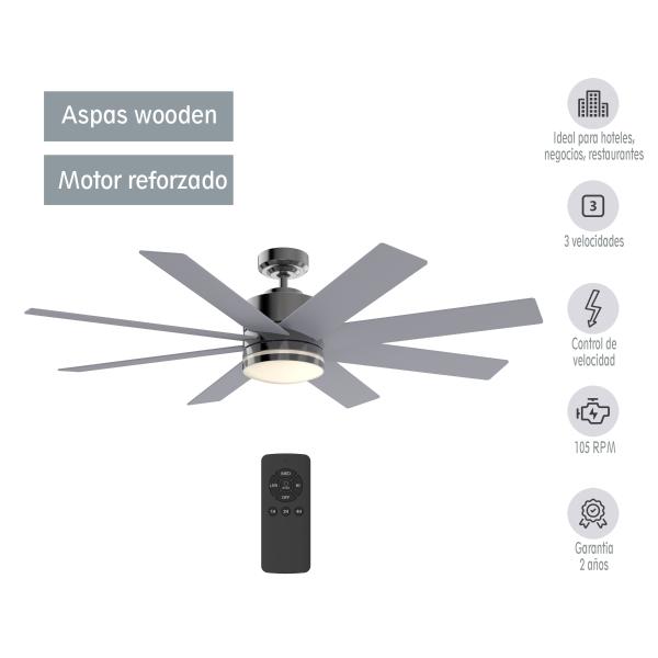 VENTILADOR DE TECHO PICHARD 60" CLÁSICO PARA INTERIOR CON LED INTEGRADO NEGRO